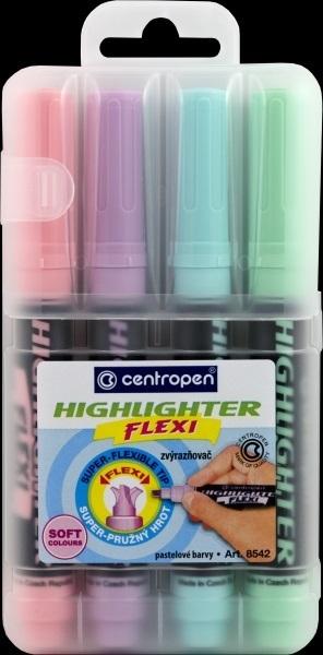Zakreślacz Centropen Highlighter flexi soft 8542 4 kolory pastel