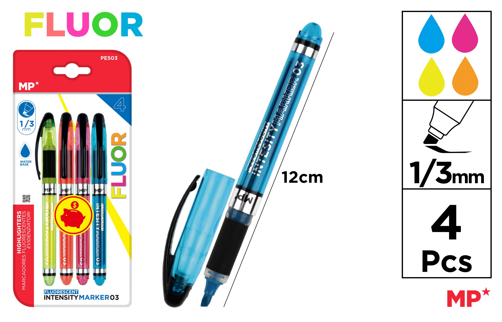 Opis produktuZasady bezpieczeństwaZakreślacz fluorescencyjny 1/3mm 4szt/blister miks kol. x