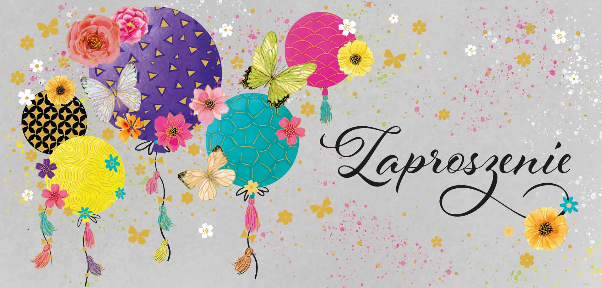 Zaproszenie jaskrawe balony z kopertami 5szt