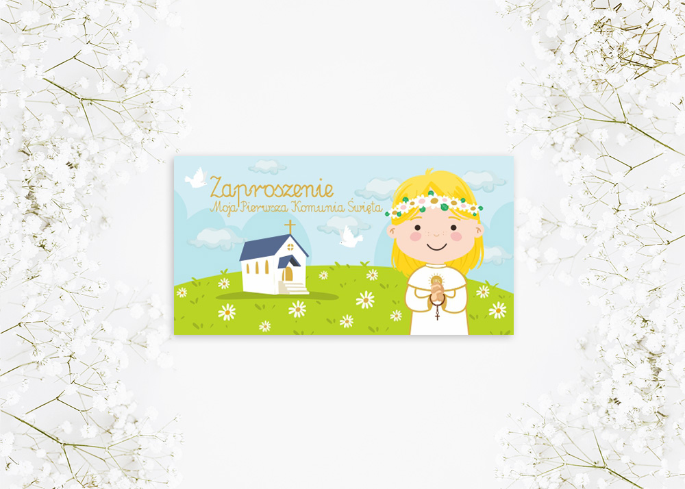 Zaproszenie - Komunia dziewczynka kolor (5 szt.)