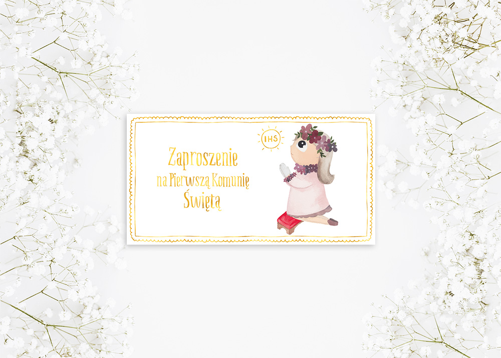 Zaproszenie - Komunia dziewczynka złoty (5 szt.)