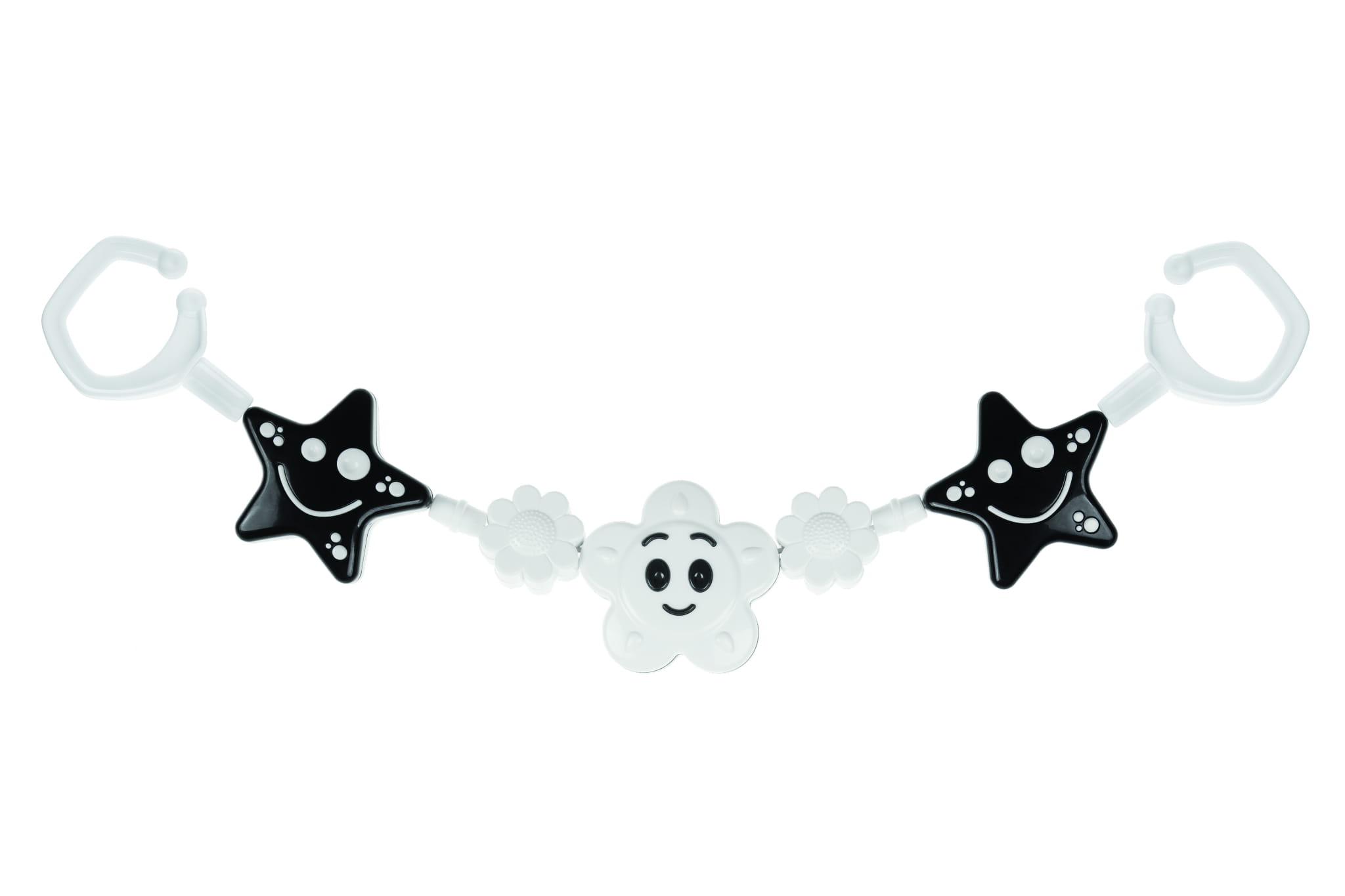 Zawieszka do wózka czarno-biała 2 gwiazdy i kwiat