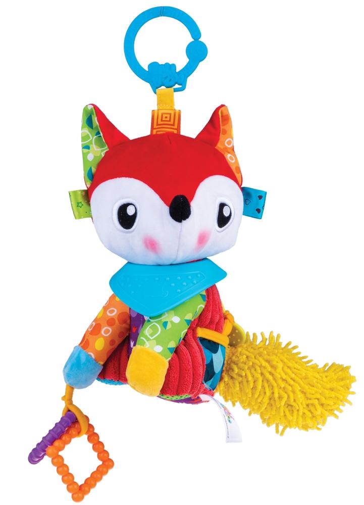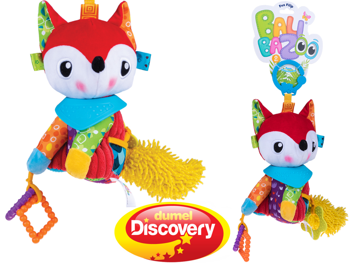 Filip to uroczy lisek, który jest bardzo nieśmiały i wciąż się rumieni. Uwielbia zabawę z maluchami oraz bujanie się na swej okrągłej zawieszce. Kółeczko to jest zarazem klamrą do mocowania, więc z jego pomocą bez trudu zawiesisz liska w wybranym miejscu, aby mógł towarzyszyć bobasowi w każdej wyprawie. Filip posiada miękką bandanę z wypustkami, która świetnie sprawdzi się w roli gryzaka. Kolorowe kształty doczepione do liska, jego sznurkowy ogon oraz materiałowe metki o różnej fakturze sprawią najmłodszym mnóstwo radości! Zabawka przeznaczona dla dzieci od dnia narodzin. x