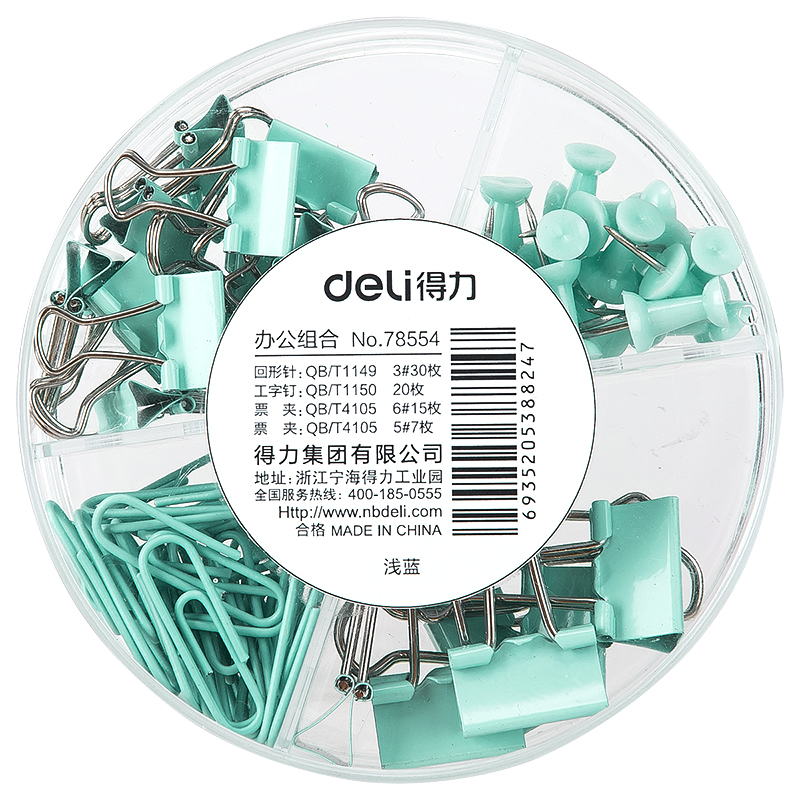kolor: miętowy 30 sztuk spinaczy 20 pinezek 15 sztuk małych klipów 7 sztuk dużych klipów
