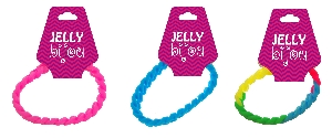 Zestaw trzech rodzajów bransoletek silikonowych.