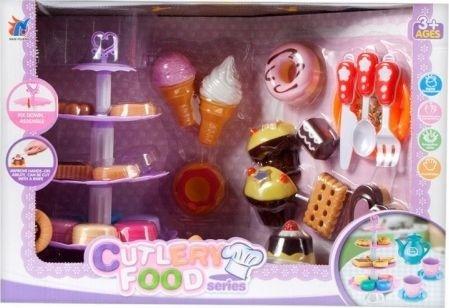 Twoje dziecko najlepiej uczy się poprzez zabawę. Zachęcając je do zabawy przyczyniasz się do rozwoju jego kreatywności, zmysłów i zdolności poznawczych. Zestaw ciasteczek MEGA CREATIVE będzie doskonałym uzupełnieniem każdej dziecięcej kuchni czy sklepu! Zestaw zawiera: 16 ciasteczek, 3 babeczki, 2 lody, Donat, 2 talerzyki oraz paterę na ciasteczka. Babeczki są zdejmowane, tak samo jest w przypadku lodów, polewę jesteśmy w stanie ściągnąć i uzyskać loda zwykłego śmietankowego. Całość wykonana jest z plastiku. Przeznaczona dla dzieci w wieku: 3+. Nie wymaga zasilania bateriami. Wymiary opakowania (dł. x wys. x gł.) [cm]: 44x30x18.