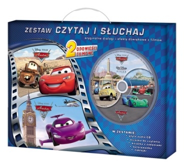 Wyjątkowy pakiet, w którym mali fani Zygzaka McQueena i jego przyjaciół znajdą:- książkę zawierającą historie oparte na filmowych hitach ""Auta"" i ""Auta 2"",- płytę CD z oryginalnymi dialogami, efektami dźwiękowymi oraz piosenkami z filmów,- książeczkę z zadaniami, - kolorowankę- naklejki. Doskonały na prezent!