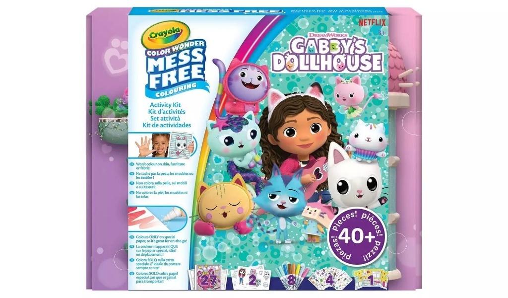 Kreatywność bez bałaganu dzięki zestawowi do ćwiczeń Gabby's Dollhouse Color Wonder Markery pojawiają się tylko na stronach Color Wonder Odkryj ukryte obrazy dzięki technologii Magic Reveal Zawiera 27 kolorowych stron do kolorowania, 8 kolorowych markerów bez bałaganu, 2 trójwymiarowe strony, 1 scena tła Color Wonder, 4 arkusze naklejek Color Wonder x