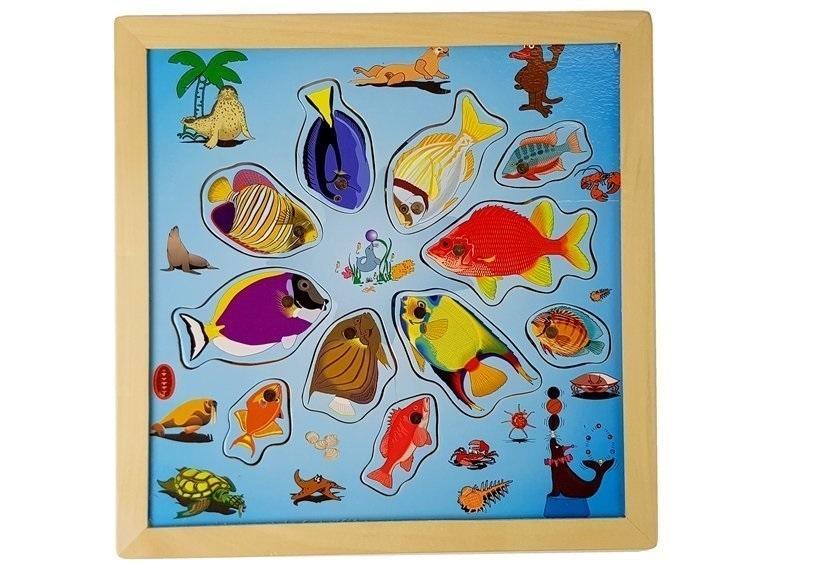 Zestaw do Łowienia Rybek na Magnes Drewniane 27x27 cm