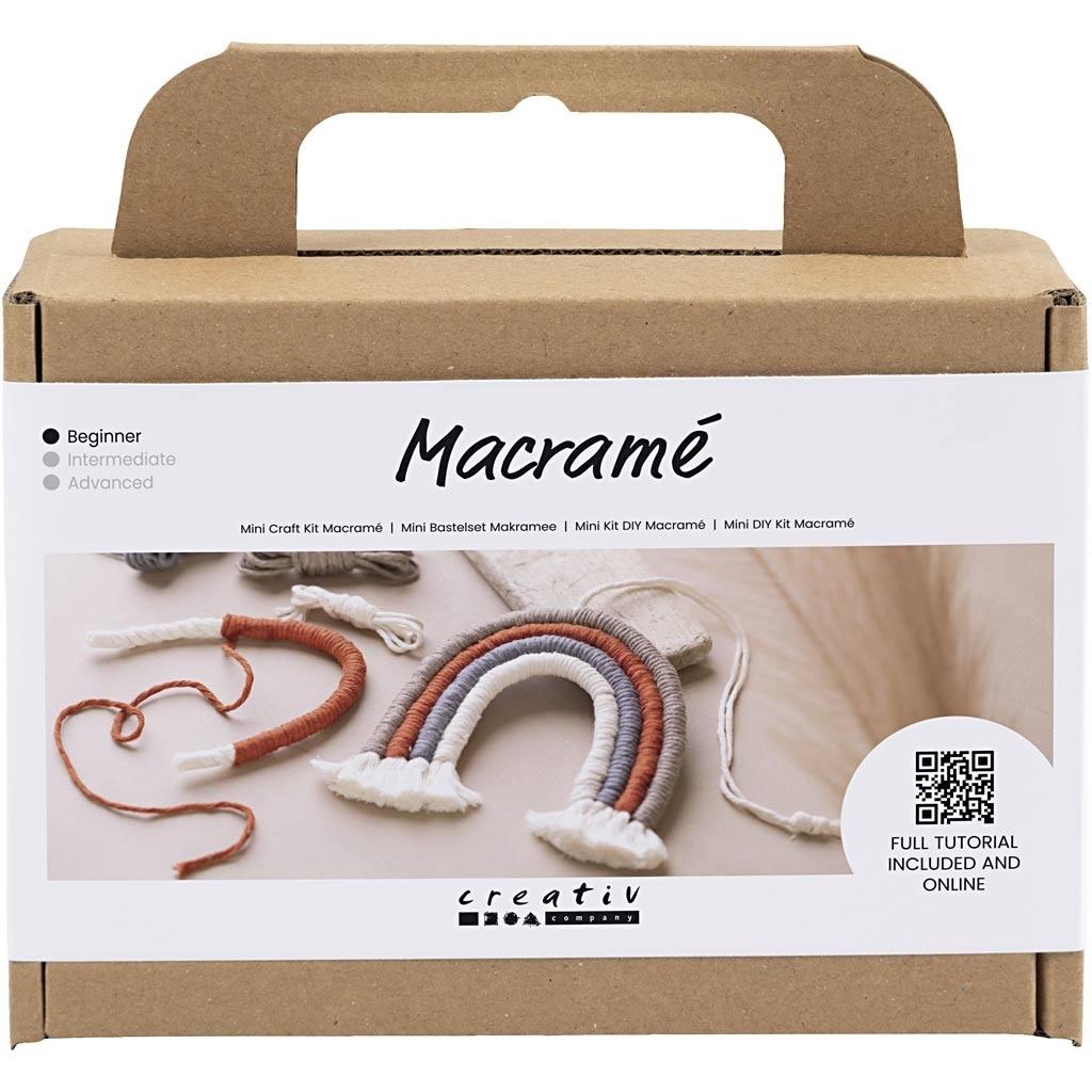 Jeśli chcesz nauczyć się tworzyć własną makramową tęczę, ten mini zestaw do majsterkowania jest dla Ciebie idealny. Owiń sznurek do makramy wokół liny i zakończ węzłem zbierającym. Na koniec zszyj łuki za pomocą igły i nici. Rezultatem jest piękna tęcza, którą można wykorzystać do dekoracji domu. Znajdź instrukcje z tyłu pudełka lub zeskanuj kod QR i postępuj zgodnie z instrukcją online.
