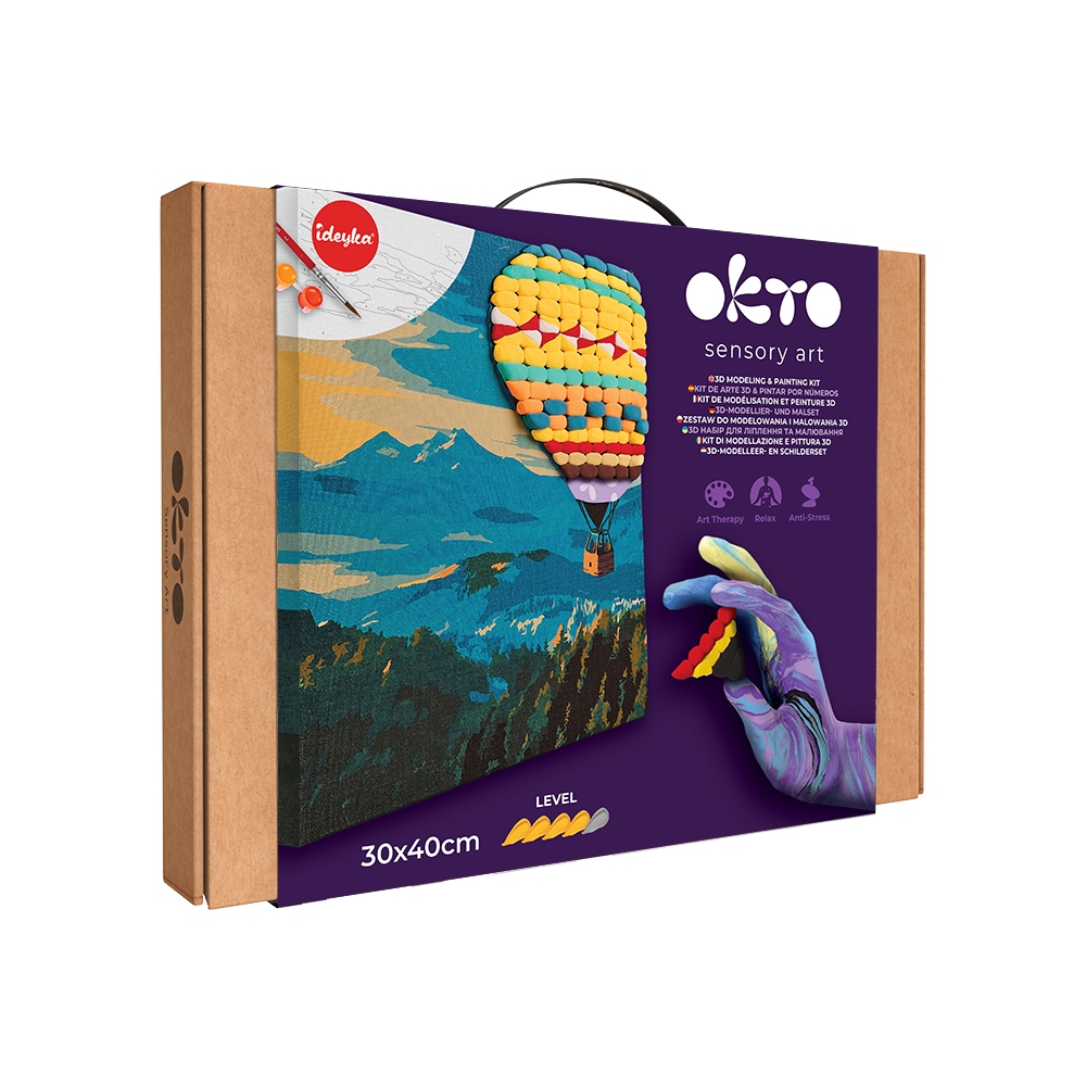 Opis produktuZasady bezpieczeństwaZawartość zestawu: Instrukcja (do malowania i modelowania obrazu) Narzędzie do modelowania Zestaw farb i pędzle Zestaw masy plastycznej Specyfikacja: Kolekcja: OKTO & Ideyka Wiek: 14+ Poziom trudności: 4 Opis: Wznieś się ponad wszystko w kolory, spokój i kreatywność. Jesteś w koszu balonu. Poniżej rozciągają się lasy i łagodne krajobrazy znikające na horyzoncie. Wokół Ciebie tylko niebo, wschód słońca i cisza. Tak właśnie wygląda chwila, gdy czas się zatrzymuje. Z zestawem OKTO Lot balonem nie tylko tworzysz obraz kształtujesz wolność własnymi palcami. Przestrzenne detale balonu, ciepłe odcienie, otwarte niebo. To Twoja droga do chwili oddechu, obecności i dotknięcia marzenia. Nie potrzeba biletu. Bez pośpiechu. Tylko Ty i kreatywność, która unosi Cię w górę. x