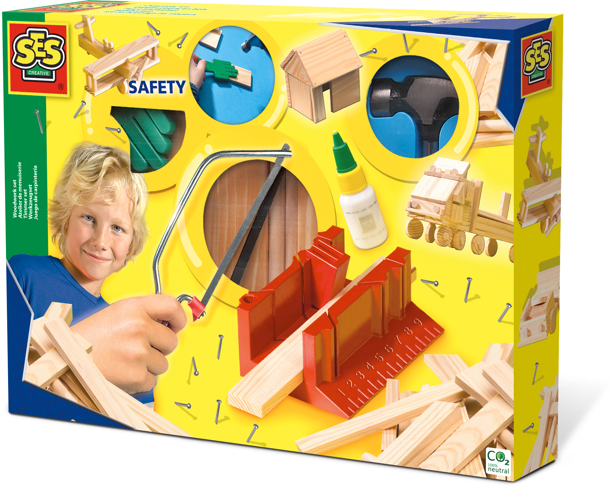 Zestaw konstrukcyjny z częściami drewnianymi .Użyj młotka młotka i gwoździ, aby połączyć różne części.