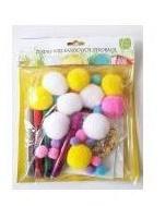Zestaw wielkanocnych dekoracji pozwoli na przygotowanie ozdób do koszyczka lub na wielkanocny stół oraz przyozdobienia pisanek. Dzięki dużym kolorowym pomponom, ruchomym oczkom oraz filcowym dodatkom stworzysz dwa kurczaczki, dwa zajączki oraz dwie owieczki. Dodatkowo brokatowe kleje nadadzą pisankom piękny połysk, a dzięki małym pomponom i konfetti dokończysz ich dekorowanie.