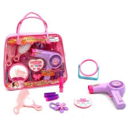 Zestaw do włosów z akcesoriami oraz z suszarką.