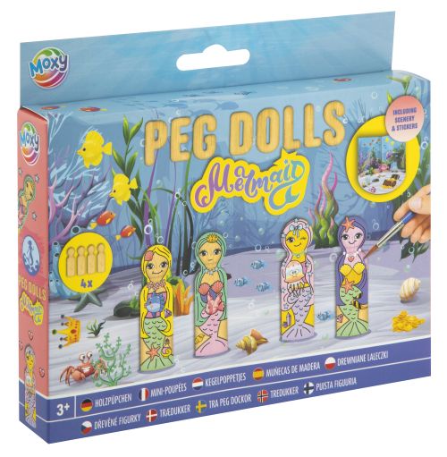 Opis produktuZasady bezpieczeństwaDrewniane lalki do kolorowania Syrenki Zestaw zawiera: 4 lalki, 6 farb, 2 pędzelki x
