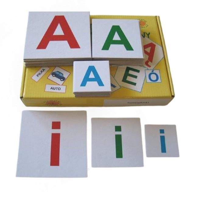 Opis produktuZasady bezpieczeństwaZestaw służy do nauki czytania i pisania prostym drukiem samogłosek oraz klasyfikacji liter w odróżnieniu od wielkości i koloru. - 27 elementów obrazkowych x