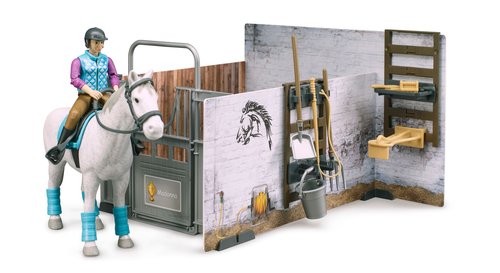 Stajnia z figurką dżokejki i konia wraz z akcesoriami od firmy Bruder to zestaw z serii bWorld, który zapewni zabawę na wiele godzin. Model został odwzorowany w skali 1:16
