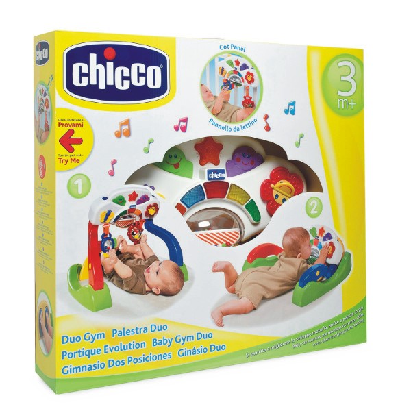 Dziecko bawi się w pozycji na brzuszku bądź na plecach. Zestaw Gimnastyczny Duo to świetna zabawka, która wspomaga rozwój dziecka. Zestaw gimnastyczny jest zaprojektowany tak, aby koordynować ruchy stóp dziecka. Biedronka i kwiatek generują zabawne dźwięki i wyświetlają przyjemne światełka. Główny panel można łatwo odmontować i przyczepić do łóżeczka.