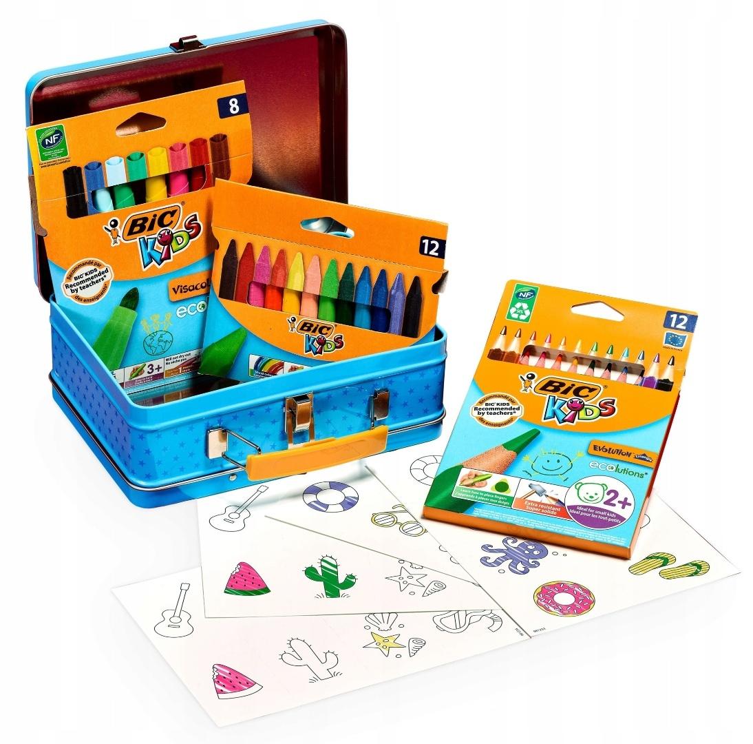 Opis produktuZasady bezpieczeństwaOto zestaw podróżny BIC Kids Memory Game z uwielbianej przez dzieci serii produktów BIC Kids, który zapewni gimnastykę młodym umysłom i pobudzi kreatywność. Solidne metalowe pudełko zawiera: • 12 supertrwałych • bezdrzewne kredki do kolorowania BIC Kids Evolution • triangle o kształcie, który wspomaga prawidłowe ułożenie palców, wspierając naukę pisania w przyszłości • 12 kredek woskowych BIC Kids Plastidecor Triangle w 12 żywych kolorach z niebrudzącym korpusem • 8 pisaków do kolorowania BIC Kids Visacolor XL o okrągłym korpusie i trwałej, nieruchomej szerokiej końcówce • 32-elementową loteryjkę obrazkową do wycięcia i pokolorowania Jakość BIC Kids, atrakcyjna cena, nauka i zabawa – zamknięte w kolorowym opakowaniu wielokrotnego użytku. x