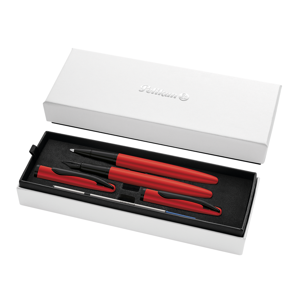 Opis produktuZasady bezpieczeństwaSpójny design i eleganckie wykończenie dla miłośników harmonii i stylu Pióro wieczne ze stalówką M zapewnia płynne i precyzyjne pisanie Pióro kulkowe na naboje atramentowe czyste i wygodne w obsłudze Oba przybory wyposażone w sprężynowy klips w kształcie dziobu pelikana Znakomite wyważenie zwiększa komfort użytkowania Metalowe elementy w 100% nadające się do recyklingu ekologiczny wybór x