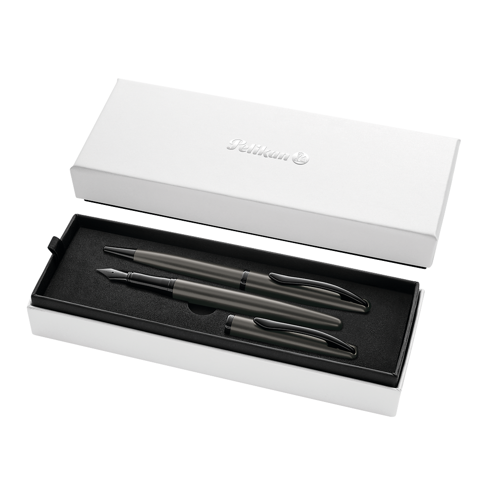 Opis produktuZasady bezpieczeństwaSpójny design pióro wieczne i długopis w tym samym, eleganckim wykończeniu Metalowa obudowa z perłowym połyskiem podkreśla prestiż zestawu Oba produkty doskonale wyważone komfortowe w codziennym użytkowaniu Klipsy sprężynowe w kształcie dziobu pelikana detal z charakterem Długopis z obrotowym mechanizmem szybki i wygodny w użyciu Nadaje się do nadruku i grawerowania idealny na prezent firmowy x