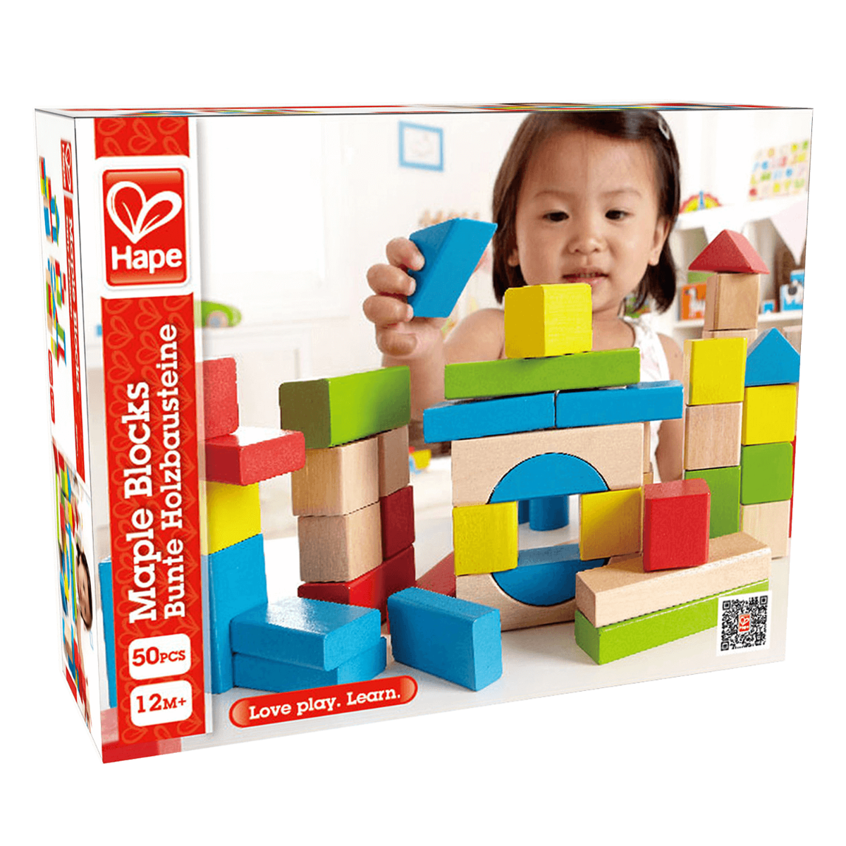 Zestaw kolorowych klocków wykonanych z naturalnego drewna to wiele pomysłów na długie godziny kreatywnej zabawy.