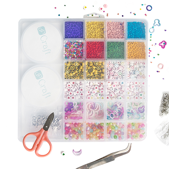 Odkryj swoją kreatywność dzięki naszemu kompletnemu zestawowi biżuteryjnemu, idealnemu zarówno dla początkujących, jak i doświadczonych twórców. W wygodnym, zamykanym pudełku znajdziesz wszystkie niezbędne elementy do rozpoczęcia przygody z tworzeniem własnej, unikatowej biżuterii. Zawartość zestawu: Koraliki 2mm otwór 0,8mm, 8 kolorów (zgaszony żółty, jasny pomarańczowy, pudrowy róż, ciemna czerwień, zgaszony zielony i intensywny fioletowy oraz różnokolorowy miks) każdy po 10g Koraliki z buźkami 7mm otwór 1mm, 2 kolory ( czarne buźki na intensywnie żółtym tle; kolorowe buźki na białym tle) po 10g Koraliki z serduszkami 7mm otwór 1mm, 4 kolory (serduszka różowe, czerwone, zielone i żółte na białej bazie) po 5g Koraliki w różnych kształtach mix 4 wzorów i kolorów (kółka, kokardki, księżyce, miśki z perłowym połyskiem, 2,5g) Koraliki ala kryształki 6mm otwór 2mm, mix tęczowych kolorów w 4 przegródkach, łącznie 20g 20 zapięć, 50 ringów, 40 zacisków Elastyczna żyłka silikonowa 0,5mm długość 10m Nożyczki