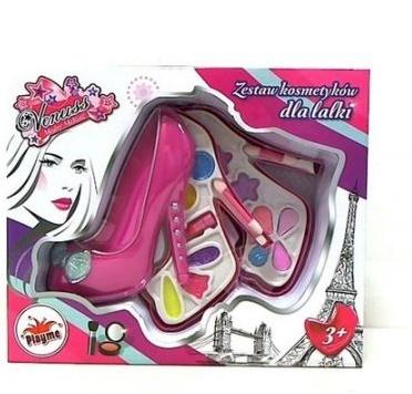 Zestaw kosmetyków do makijażu dla lalki w kształcie bucika.
