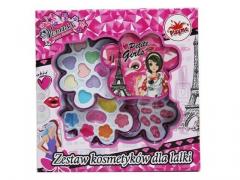 Zestaw kosmetyków dla lalki rozszuwany, na trzech poziomach.