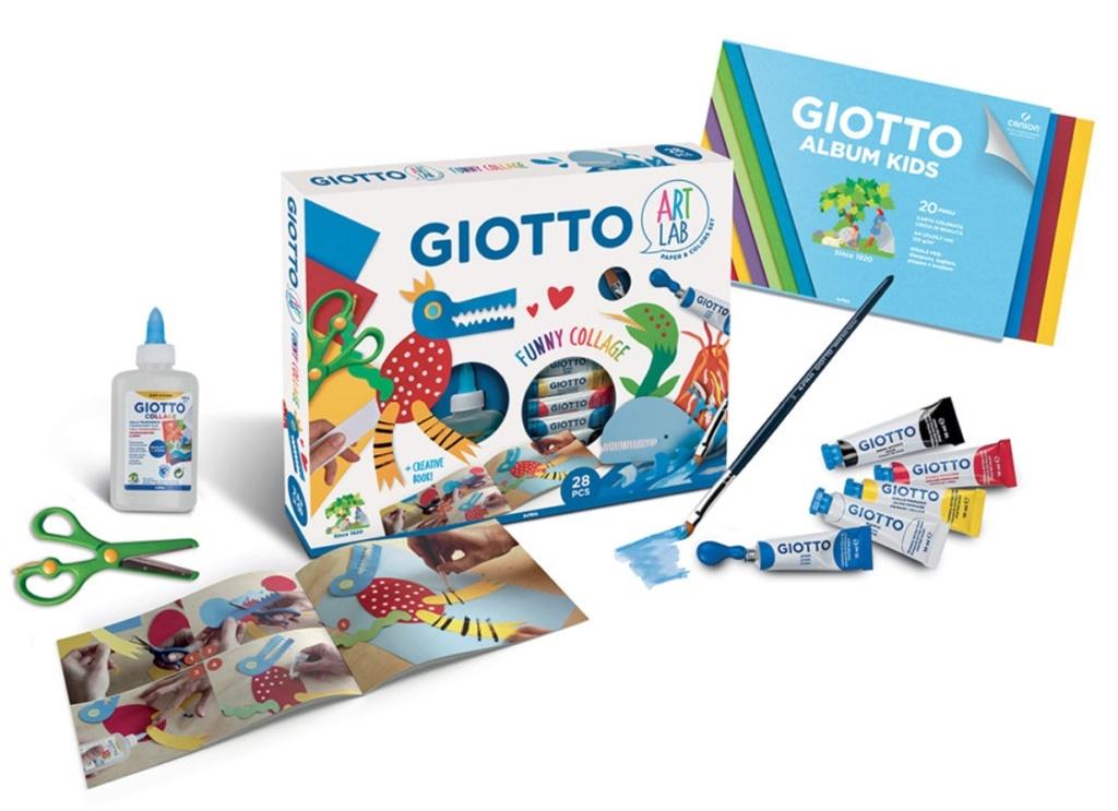 -kolorowy blok -nożyczki -klej do kolażu -blok kreatywny -pędzelek -farbki w tubkach 5 kolorów x