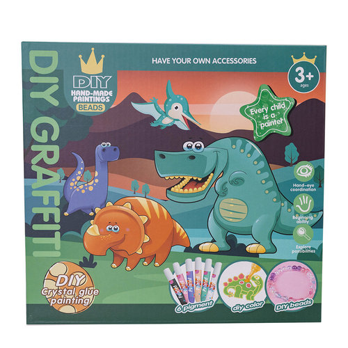 W zestawie 6 elementów tematycznych do dekoracji, 6 farbek, zestaw kolorowych dżetów, łańcuszki, koraliki, żyłka, pęseta.