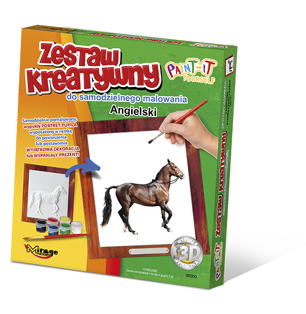 Zestawy kreatywne od Mirage Hobby proponują kolekcję obrazków, których bohaterami są konkretne rasy zwierząt. realistyczne odzwierciedlenie danej rasy psa, kota, konia, czy futrzaka, wyróżnia tę serię na tle innych zestawów do samodzielnego malowania. Kolekcja obejmuje 4 serie po 8 wzorów. Np. w serii koni znajdziemy konia: andaluzyjskiego, angielskiego, arabskiego, bretońskiego, Holsztyńskiego, Quoter Horse, Mustanga, Trakeńskiego. W serii psów nie zabrakło choćby yorka. Obrazek pupila w Zestawach Kreatywnych Mirage Hobby, to wypukła wytłoczka 3D. Ponieważ jest ona wykonana z plastiku, możliwe jest umycie obrazka ciepłą wodą z mydłem i powtórne jego pomalowanie. Dzięki temu można poprawiać i dopracowywać swoje dzieło do uzyskania pożądanego efektu. x