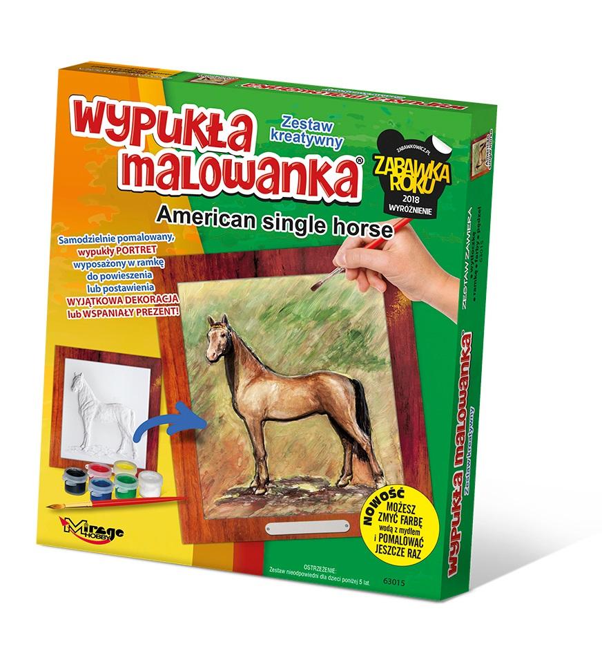 Wypukłe Wytłoczki 3D od Mirage Hobby Stwórz niepowtarzalną dekorację. Odkryj malowanie na nowo i to w wymiarze 3D. Nowa linia zestawów kreatywnych to możliwość stworzenia własnej, niepowtarzalnej galerii ulubionych zwierząt. Zestawy kreatywne od Mirage Hobby proponują kolekcję obrazków, których bohaterami są konkretne rasy zwierząt. realistyczne odzwierciedlenie danej rasy psa, kota, konia, czy futrzaka, wyróżnia tę serię na tle innych zestawów do samodzielnego malowania. Kolekcja obejmuje 4 serie po 8 wzorów. Np. w serii koni znajdziemy konia: andaluzyjskiego, angielskiego, arabskiego, bretońskiego, Holsztyńskiego, Quoter Horse, Mustanga, Trakeńskiego. W serii psów nie zabrakło choćby yorka. Obrazek pupila w Zestawach Kreatywnych Mirage Hobby, to wypukła wytłoczka 3D. Ponieważ jest ona wykonana z plastiku, możliwe jest umycie obrazka ciepłą wodą z mydłem i powtórne jego pomalowanie. Dzięki temu można poprawiać i dopracowywać swoje dzieło do uzyskania pożądanego efektu.