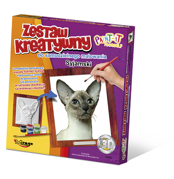 Zestawy kreatywne od Mirage Hobby proponują kolekcję obrazków, których bohaterami są konkretne rasy zwierząt. realistyczne odzwierciedlenie danej rasy psa, kota, konia, czy futrzaka, wyróżnia tę serię na tle innych zestawów do samodzielnego malowania. Kolekcja obejmuje 4 serie po 8 wzorów. Np. w serii koni znajdziemy konia: andaluzyjskiego, angielskiego, arabskiego, bretońskiego, Holsztyńskiego, Quoter Horse, Mustanga, Trakeńskiego. W serii psów nie zabrakło choćby yorka. Obrazek pupila w Zestawach Kreatywnych Mirage Hobby, to wypukła wytłoczka 3D. Ponieważ jest ona wykonana z plastiku, możliwe jest umycie obrazka ciepłą wodą z mydłem i powtórne jego pomalowanie. Dzięki temu można poprawiać i dopracowywać swoje dzieło do uzyskania pożądanego efektu. x