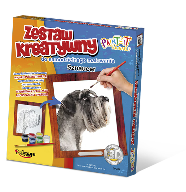 Zestawy kreatywne od Mirage Hobby proponują kolekcję obrazków, których bohaterami są konkretne rasy zwierząt. realistyczne odzwierciedlenie danej rasy psa, kota, konia, czy futrzaka, wyróżnia tę serię na tle innych zestawów do samodzielnego malowania. Kolekcja obejmuje 4 serie po 8 wzorów. Np. w serii koni znajdziemy konia: andaluzyjskiego, angielskiego, arabskiego, bretońskiego, Holsztyńskiego, Quoter Horse, Mustanga, Trakeńskiego. W serii psów nie zabrakło choćby yorka. Obrazek pupila w Zestawach Kreatywnych Mirage Hobby, to wypukła wytłoczka 3D. Ponieważ jest ona wykonana z plastiku, możliwe jest umycie obrazka ciepłą wodą z mydłem i powtórne jego pomalowanie. Dzięki temu można poprawiać i dopracowywać swoje dzieło do uzyskania pożądanego efektu. x