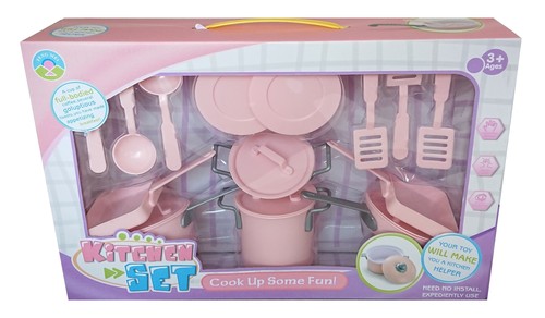 Zestaw plastikowych naczyń i garnków do zabawy w kuchnię - 16 elementów.