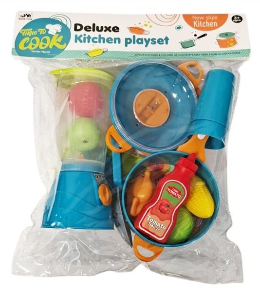 Opis produktuZasady bezpieczeństwaZestaw kuchenny z garnkami, blenderem, kubkami, warzywami i owocami i akcesoriami. Zabawka przeznaczona dla dzieci od lat 3. Produkt zapakowany w przezroczysty worek. x