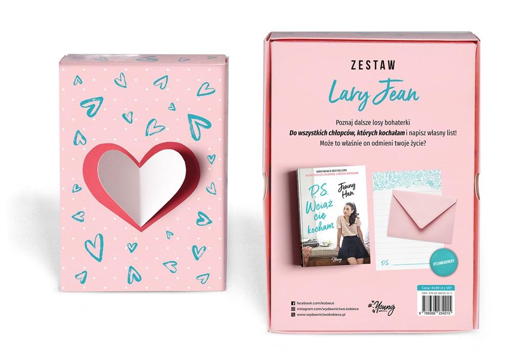 Poznaj dalsze losy bohaterów i napisz własne listy! Zestaw zawiera drugi tom serii o Larze Jean, pod tytułem P.S. Wciąż cię kocham, przepiękny papier listowy oraz koperty, które posłużą Ci do napisania swoich listów, oraz przypinkę #TeamKavinsky! Całość znajdziesz w uroczym, kolorowym pudełku, w którym będziesz mogła przechowywać swoje listy i inne tajemnice. Sekretem udanego związku jest miłość, szczerość i bezgraniczne zaufanie. Jednak kiedy Peter spędza zbyt dużo czasu z Genevieve, swoją ex, Lara Jean robi się podejrzliwa. Chłopak utrzymuje, że to tylko przyjaźń, ale Lara Jean nie jest tego taka pewna. Na dodatek do jej życia wraca John Ambrose, piąty adresat miłosnych listów, który nie ukrywa, że dziewczyna mu się podoba. Nagle we wciąż świeżym związku Lary Jean i Petera robi się bardzo tłoczno. Rozwiązaniem problemu wydaje się zabawa z dzieciństwa, w którą wszyscy postanawiają zagrać. Jeżeli Lara Jean wygra, Genevieve będzie musiała zostawić Petera w spokoju. Tylko czy dziewczyna wciąż chce, aby coś ją łączyło z tym chłopakiem? x