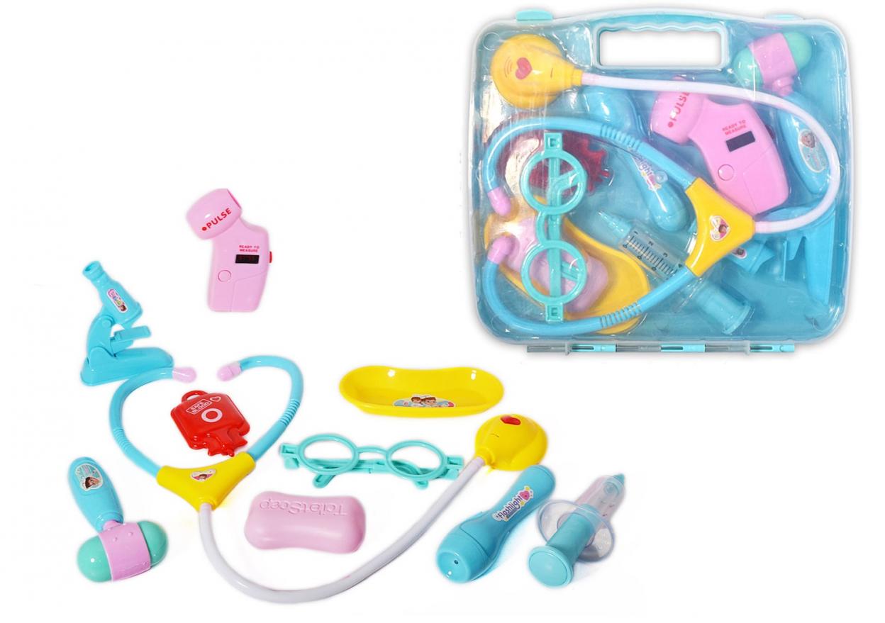 Zestaw lekarski w walizce 10 elementów. Narzędiza zasilane 4 bateriami AG13, dołaczone do zestawu.