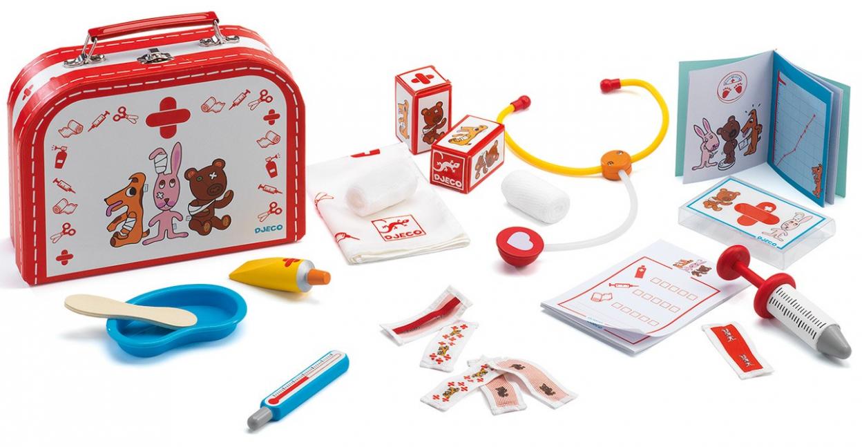 Z tym zestawem młody weterynarz wyleczy wszystkie chore misie i zranione pieski. W walizeczce znajdują się wszystkie potrzebne akcesoria: -termometr -strzykawka -bandaże -plastry -krem przeciwbakteryjny -książeczka zdrowia Wiek: 4+ Wymiary opakowania: 22x16x7,5cm