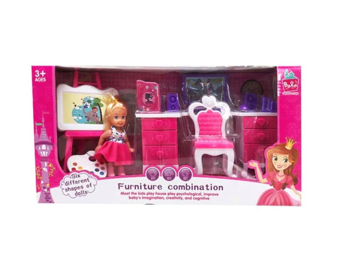 Opis produktuZasady bezpieczeństwaZestaw biało-różowych mebelków i akcesoriów z małą laleczką. Zabawka dla dzieci w wieku od 3 lat. x