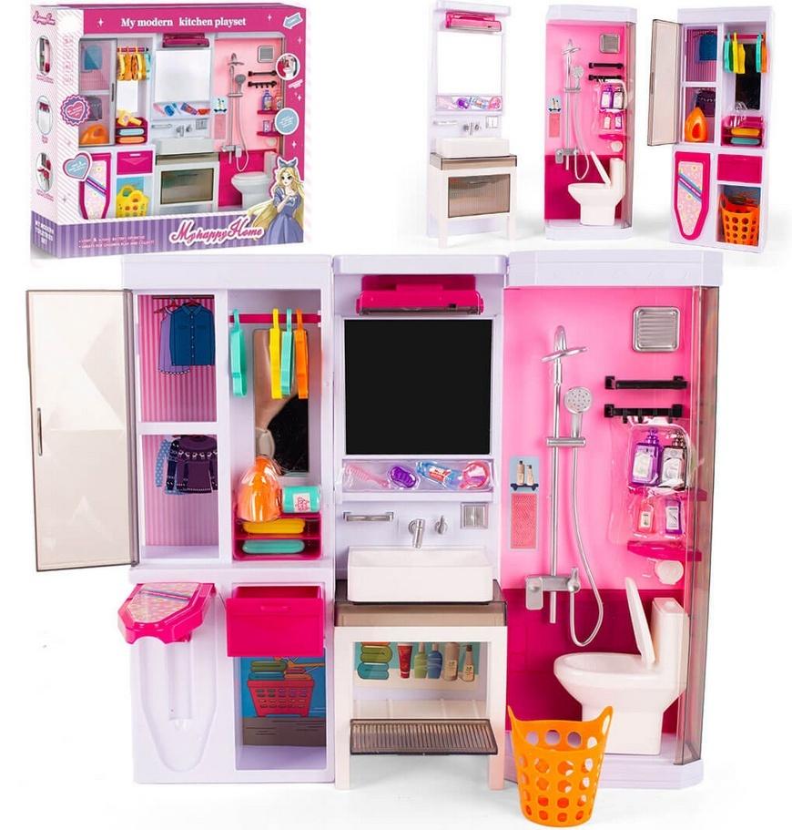 Opis produktuZasady bezpieczeństwaStylowy i kolorowy zestaw łazienkowy do domku dla lalek to idealna propozycja dla każdej małej miłośniczki zabawy w dom. W komplecie znajdują się realistyczne meble i akcesoria: prysznic, toaleta, umywalka z lustrem, pralka, szafki oraz półki z kosmetykami. Całość wykonana została z trwałego plastiku i dopracowana w najmniejszych szczegółach. Dzięki bogatemu wyposażeniu dziecko może odgrywać codzienne scenki, rozwijając przy tym wyobraźnię, kreatywność i umiejętności społeczne. Zestaw pasuje do większości popularnych domków dla lalek i może być uzupełnieniem innych pomieszczeń. To świetny pomysł na prezent, który zapewni godziny wesołej i edukacyjnej zabawy. Najważniejsze cechy i zalety: