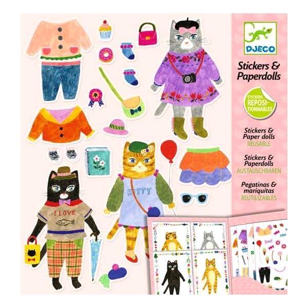 Zestaw naklejek i papierowych lalek - Kotki