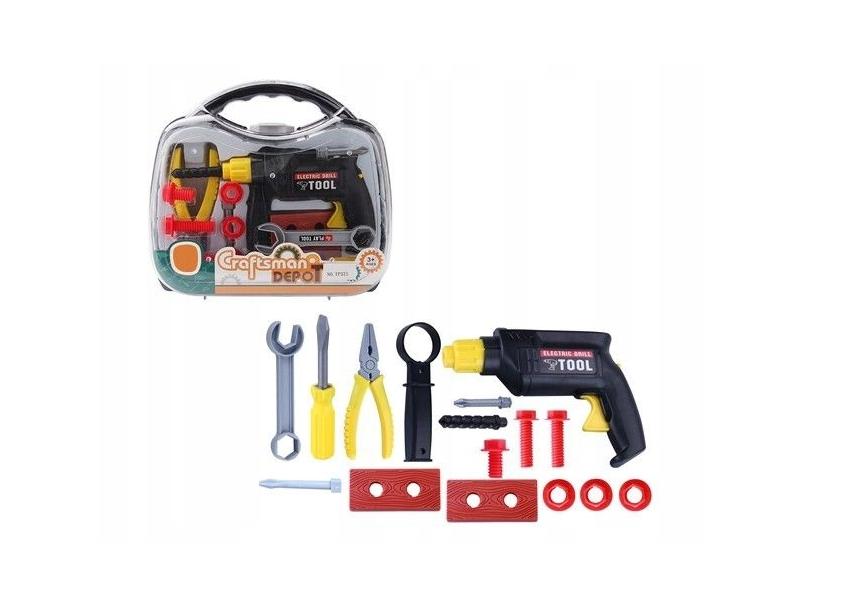 Opis produktuZasady bezpieczeństwaNarzędzia w skrzynce Zestaw zawiera 16 elementów, w tym wiertarkę na baterie. x