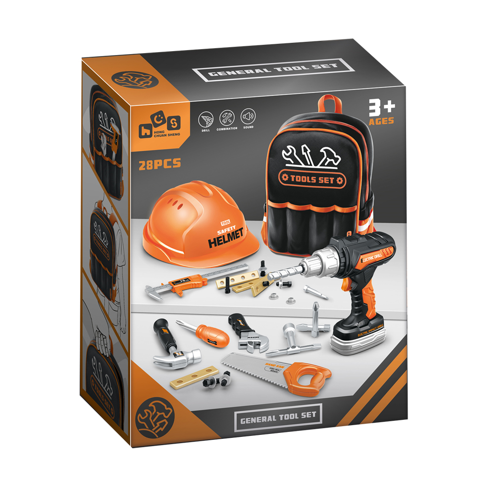Opis produktuZasady bezpieczeństwaZestaw z 28 elementów, między innymi wiertarko-wkrętarki oraz kilku wymiennych końcówek do niej, kasku, piły, młotka, śrubokrętu, miarki. Wszystko zapakowane w plecak. Wiertarko-wkrętarka wymaga baterii - 2xAA (niedołączone) x