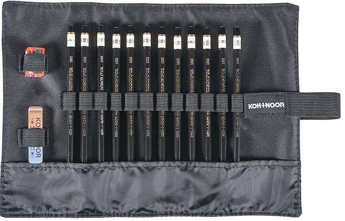 Opis produktuZasady bezpieczeństwaKomplet ołówków grafitowych serii 1900 w czarnym zwijanym etui. W skład zestawu wchodzi 12 sztuk ołówków od 8B do 2H, temperówka plastikowa oraz gumka. x