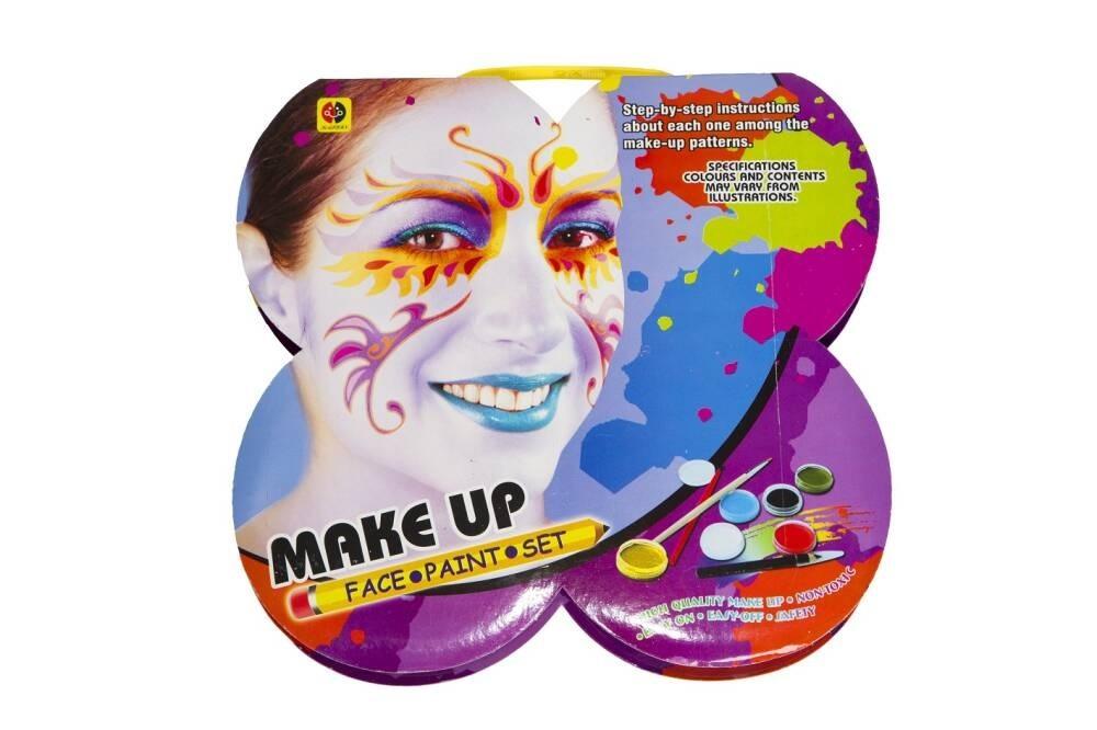 Opis produktuZasady bezpieczeństwaZestaw do malowania twarzy, który zawiera: instrukcję, 2 pędzelki, 2 kredki, 6 kolorów farb, 2 gąbki, lusterko. Produkt nie potrzebuje baterii. Zabawka przeznaczona dla dzieci powyżej 3 roku życia. x