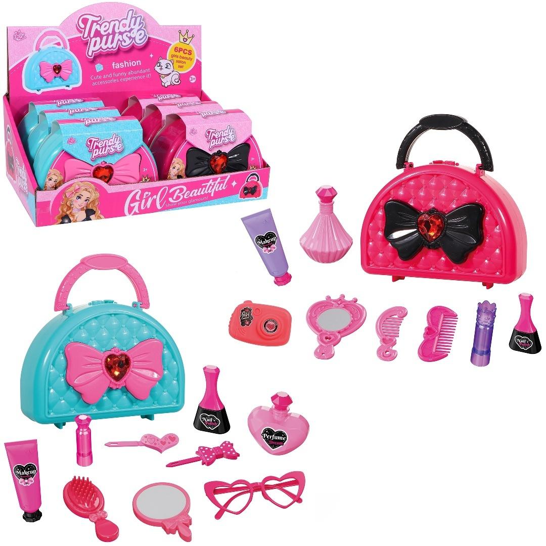 Opis produktuZasady bezpieczeństwaZestaw "Trendy Purse - Girl Beautiful" - Torebka z Akcesoriami do Makijażu i Stylizacji Spełnij marzenia każdej małej modnisi o własnym zestawie do makijażu i stylizacji z naszą uroczą torebką "Trendy Purse - Girl Beautiful"! Ten przenośny komplet, dostępny w dwóch wariantach kolorystycznych, to idealny sposób na kreatywną i bezpieczną zabawę w salon piękności, zarówno w domu, jak i w podróży. Stylowa Torebka i Bogactwo Akcesoriów: Zestaw zamknięty jest w designerskiej torebce w kształcie półokręgu, ozdobionej dużą kokardą z "kryształowym" serduszkiem, dostępnej w żywym różu lub turkusie. Torebka pełni funkcję pojemnika na wszystkie akcesoria, które inspirują do zabawy w makijażystkę, fryzjerkę lub stylistkę. W jej wnętrzu znajdziesz m.in.: Atrapy kosmetyków: "Szminka", "perfumy", "lakiery do paznokci", "krem" (wszystkie bezpieczne atrapy, nieprawdziwe kosmetyki). Akcesoria do włosów: "Suszarka" (zabawkowa, bez funkcji), grzebień, szczotka. Biżuteria i dodatki: Okulary (bez szkieł), lusterko, "spinki". Kreatywna Zabawa i Rozwój Umiejętności: Zabawa zestawem "Trendy Purse" to doskonały sposób na: Rozwój wyobraźni i kreatywności: Dzieci mogą odgrywać scenki z życia dorosłych, wymyślać własne stylizacje i historie. Rozwój zdolności manualnych: Operowanie małymi akcesoriami, czesanie, "makijaż" lalek czy koleżanek. Wspieranie interakcji społecznych: Idealna do wspólnej zabawy z rówieśnikami lub rodzicami. Naukę dbania o wygląd i estetykę: W bezpieczny i dziecięcy sposób. Bezpieczne Materiały: Wszystkie elementy zestawu wykonane są z wysokiej jakości, bezpiecznego dla dzieci tworzywa sztucznego, co gwarantuje długie godziny beztroskiej zabawy. Produkty są atrapy i nie zawierają prawdziwych kosmetyków, co zapewnia bezpieczeństwo użytkowania. Idealny Prezent: Zestaw "Trendy Purse" to fantastyczny prezent na urodziny, imieniny czy Dzień Dziecka dla każdej małej dziewczynki, która marzy o własnej torebce pełnej "skarbów" i uwielbia bawić się w stylizacje! Specyfikacje: Wymiary torebki: 10x6x15 cm Materiał: Wysokiej jakości tworzywo sztuczne. Kolory Torebek: Różowy, Turkusowy (z czarnymi i różowymi akcentami). Zawartość Zestawu: 1x torebka-etui, zestaw akcesoriów do stylizacji i "makijażu" (łącznie 6+ pcs, jak podano na opakowaniu, jednak na zdjęciu widać znacznie więcej). Zalecany Wiek: Od 3 lat. x