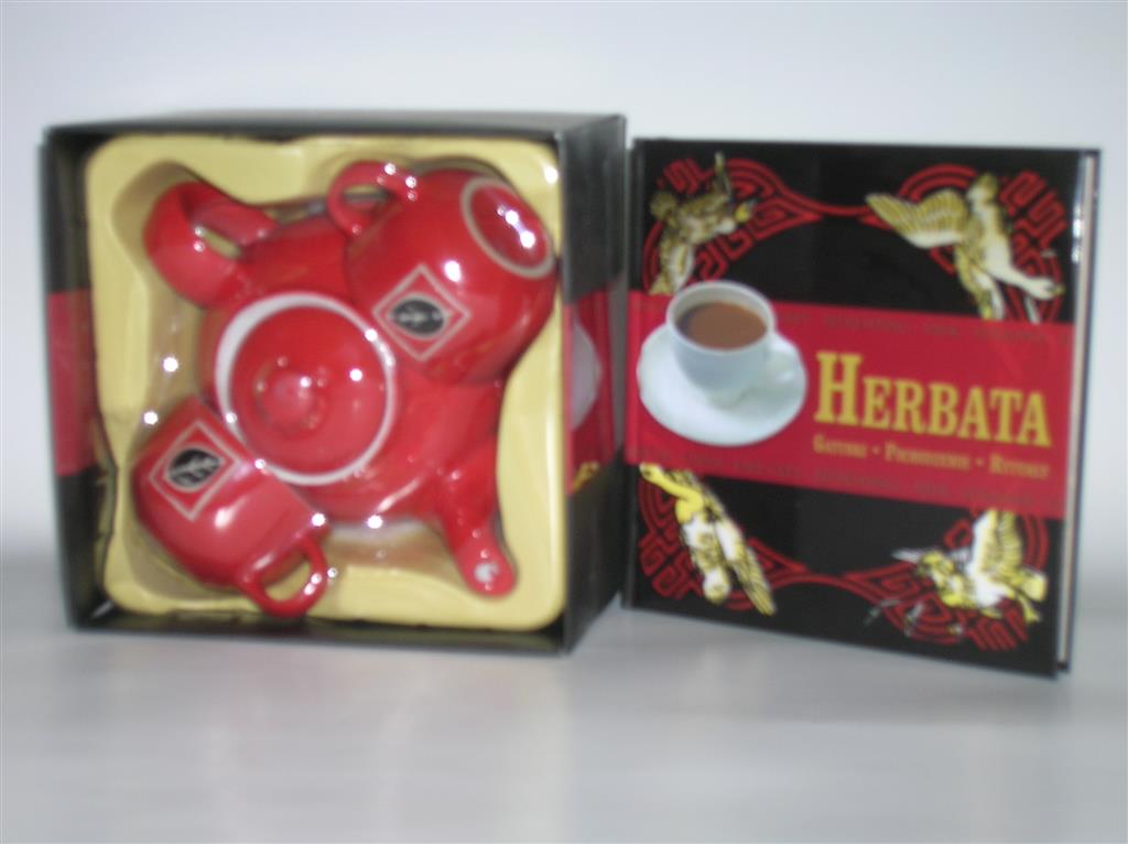 Przewodnik po odmianach herbat. Książka zawiera min. opisy gatunków, informacje dotyczące parzenia i przechowywania herbaty oraz receptury na gorące napoje. Do książki dołączono mały czajnik do zaparzania i 2 filiżanki ze spodkami.
