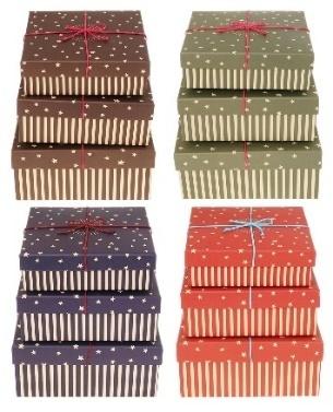 Zestaw pudełek - kwadrat paski-gwiazdki 3 sztuki czerwony